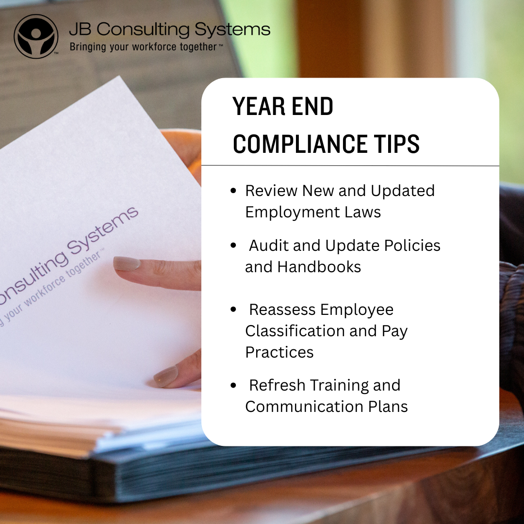 If you need guidance updating your handbook, auditing compliance practices, or training managers on new laws, JB Consulting Systems can help you start the year on solid footing.